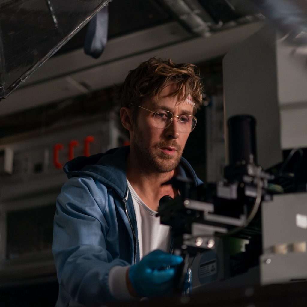 Phil Lord e Christopher Miller entendem com perfeição que leveza não é o contrário de grandeza. A bagagem da dupla, visível desde 21 Jump Street e 22 Jump Street e expandida no espírito inventivo associado ao Aranhaverso, reaparece aqui não como gag vazia, mas como domínio de tom. O filme tem humor, e muito, mas o humor nunca sabota a urgência dramática; ele a intensifica (se é que isso é possível, mas aqui funciona). Ryan Gosling se aproveita disso magnificamente. Seu personagem é engraçado sem se tornar uma caricatura, vulnerável sem implorar simpatia, heroico sem posar de mártir. Há um timing cômico muito preciso na atuação, mas há também uma humanidade desarmante. É esse equilíbrio que impede o longa de afundar na solenidade científica ou na pieguice motivacional.